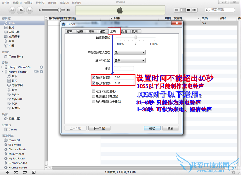 铃声限于40秒内:30-40秒只能作为来电铃声
