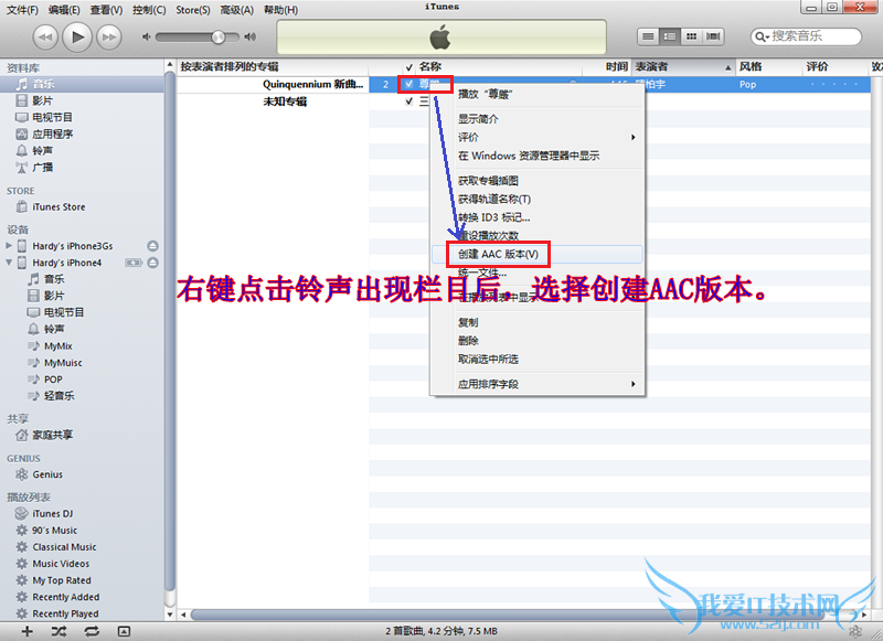 →若你的iTunes上显示并非“创建AAC版”请点击本链接进入2L查看修改设置方法←