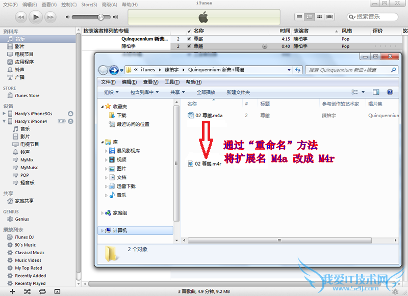 ⑦ 对创建所得铃声通过重命名,将原来扩展名M4A修改成M4R。