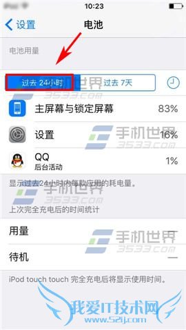 1)进入设置界面,点击【电池】,选择【过去24小时】可以查看24小时前电池用量。(如下图)