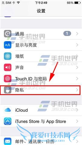 1)点击【设置】进入界面,选择【隐私】。(如下图)
