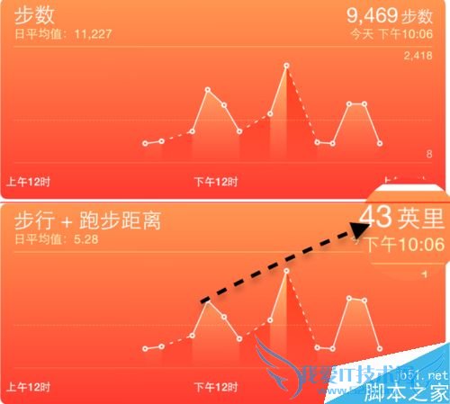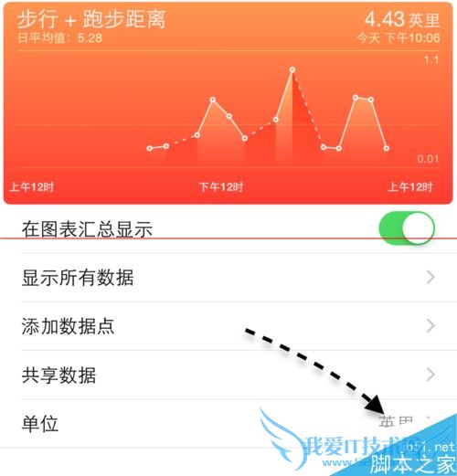 2、如下图所示,在我的健康里,当前步行距离是在“英里” 单位来显示的。