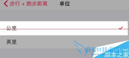 3、点击“步行+ 跑步距离” 图标,进入详细设置界面,然后就可以看到单位的设置选项了。