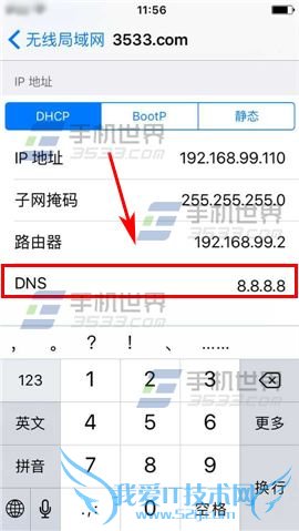 2)点击已经连接的【无线网】进入,将【DNS】改为【8.8.8.8】或者【114.114.114.114】即可。(如下图)