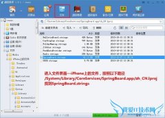1、下载并安装越狱助手2、运行越狱助手,并连接越狱设备到电脑。进入文件界面—iPhone上的文件,按照以下路径找到SpringBoard.strings修改简体字路径:/System/Libra...