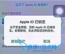 最近,很多苹果手机用户的iPhone突然被锁死,弹出一个AppleID已锁定对话框,提示需解锁,需要填写ID密码,这个时候怎么办?千万别点解锁帐户,因为你填进去之后不到几...