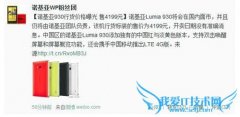 【诺基亚Lumia】售价4199元 诺基亚Lumia 930将面市国