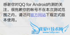 欢迎您访问52ij手机之家,今天小编为你分享的手机知识是:【手机QQ安装后提示帐号不在测试范围内解决方法】,请阅读以下详细内容!手机QQ安装后提示帐号不在测试范围...