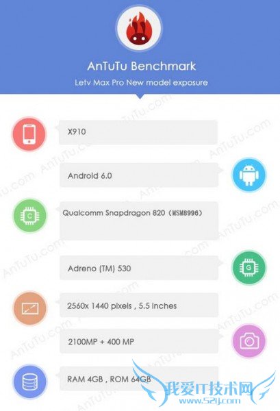 近日,乐视全新旗舰也受到了全新曝光,根据推测,这很有可能会是乐视即将发布的乐Max Pro。该机仍然是一款金属指纹识别机,采用2.5D玻璃材质。在主要硬件方面,乐Max Pro将会搭载全新的高通820处理器,配备4GB运存和64GB机身存储,摄像头更是采用了后置2100万像素和前置400万像素的强大组合。根据安兔兔曝光的跑分成绩来看,乐Max Pro成绩将达到133357分,可谓让人吃惊。