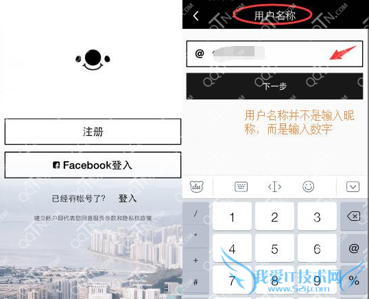 1、在打开17APP后点击注册,在用户名称上设置在6位或6位以上的字母或数字;