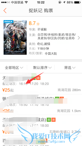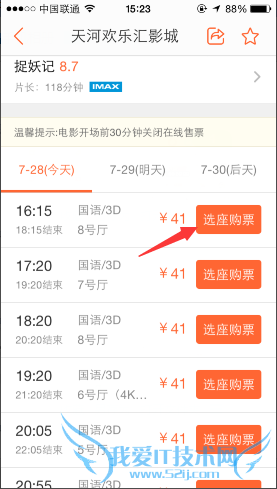 1、因为小编的抵用券仅限购买捉妖记!所以随便在哪个影院选择捉妖记,正常步骤购票;