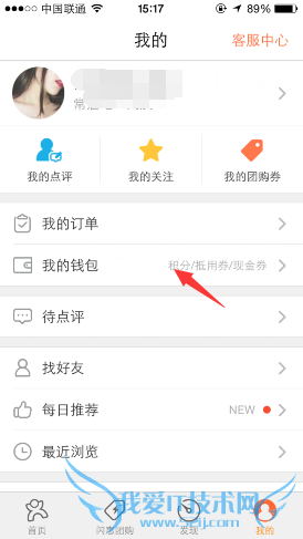 1、进入大众点评首页后,点击“我的”,然后进入我的钱包,如图: