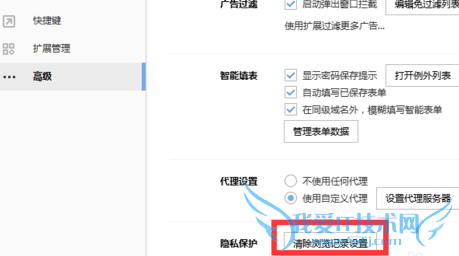 接下来找到“浏览器缓存”相关项,将“浏览器缓存”给清理掉。在此以“搜狗浏览器”为例,切换到“高级”选项卡,点击“隐私保护”栏目中的“清除浏览记录设置”按钮。