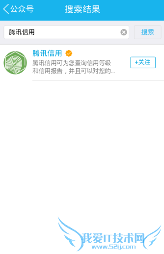2.接下来可以在搜索框输入【腾讯信用】这样查找起来就比较快,找到之后先点击【关注】
