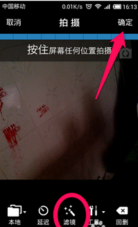 2、在这里选择本地,然后选择照片(如不需要照片制作视频,可以直接按住屏幕任何位置进行拍摄,后续步骤基本一样)。
