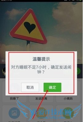 3、跳出个确认的框子,可以看到总共睡了多长时间,点击“确定“发送。小恩爱怎么叫对方起床?