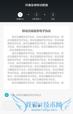 2.勾选《移动流量服务电子协议》,并点“下一步”