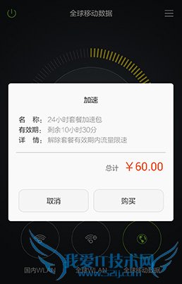 当超过套餐限定流量后,网速会被限制为2G,可以通过购买加速包来解除限速,点击“加速”.若确定要购买加速包,则点击“购买”