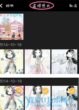 2、从你的相册导入照片,在每个图片右上方打勾,选中添加,已选照片会出现在下方。也可以点击一张图片进入后,在右上方打勾,点击“下一张”继续添加。