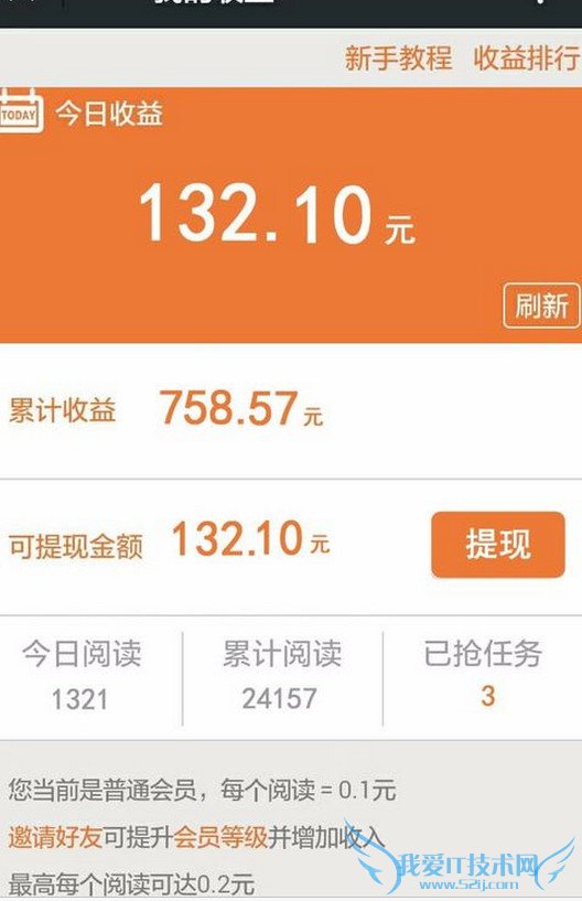 步骤四:查看收益,朋友们每阅读一次分享的文章,你可以获得0.1-0.2元的收入。