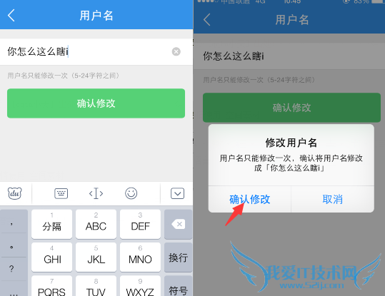 2、饿了么用户名只能修改一次,并且最少需5字以上,确认后点击修改即可。