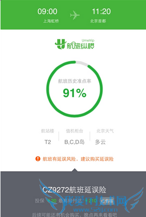 4、在购买飞机票的过程中,系统会主动提示大家购买延误险,直接点击下方进入;