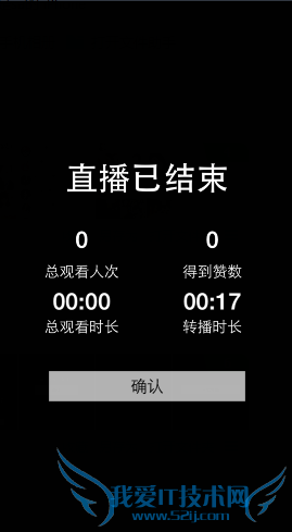 3、这个时候,17APP会弹出直播已结束的画面,并且会有观看人数、得到赞数、转播时长等相关信息,这是可以证明自己人气的最好写照啦!
