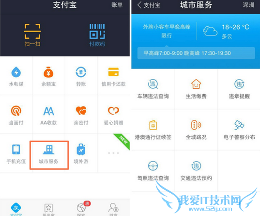 打开新版支付宝钱包,点击主页上的“城市服务”,系统会自动定位你所在的城市,可以清楚的看到你家的城市服务功能。