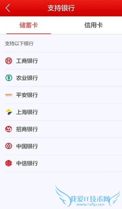 7、储蓄卡、信用卡都可以绑定,但是支持的银行只有几家,有点少啊:
