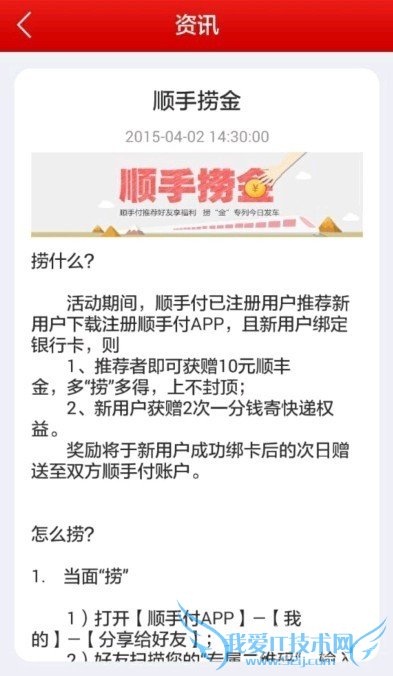 1、首先,我们在进入活动时,将活动规则仔细看清楚,说是顺丰1分钱寄快递,其实是顺手付寄快递,因为要下载的是顺手付APP;