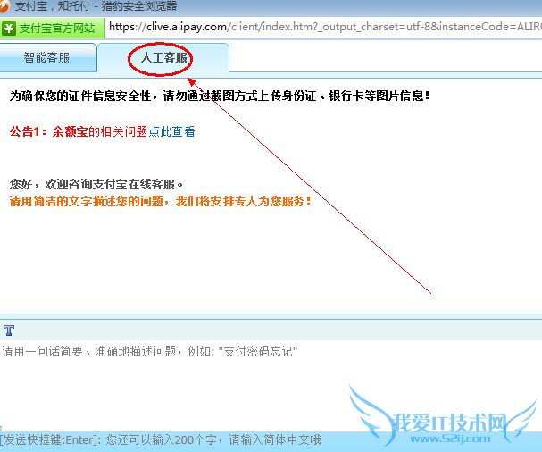 这时在弹出的窗口中,选择人工客服,马上当你说出自己的问题后,支付宝客服就会要求你提供给他们你的身份证号,支付宝账号,客服会根据你反馈的情况,马上就会提供你解决的方案了。
