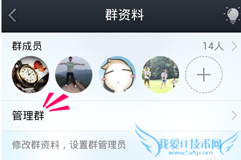 打开QQ群资料往下滑屏,找到成员头像下面的那一行[管理群],如果你不是QQ群主或者管理员是看不到这一项的