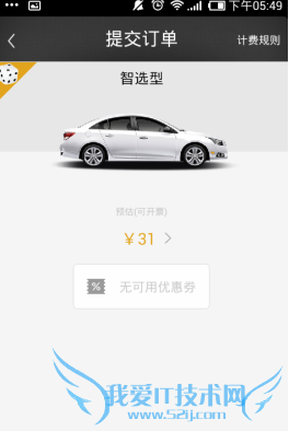 3、可以看到系统自动帮你选择了合适的车型和价格,并且自动匹配了可用优惠券,没有优惠券的就无法显示。