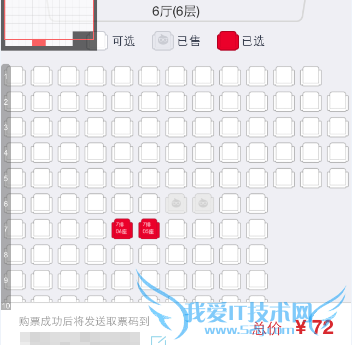 7.选择自己的座位(白的是空位,红的代表已经选择的),然后点击确认选座