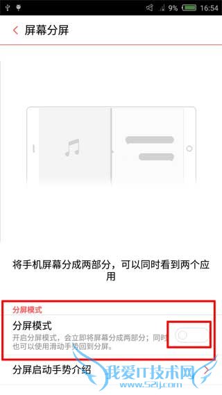 第三步:在“屏幕分屏”,打开分分屏模式,如图。
