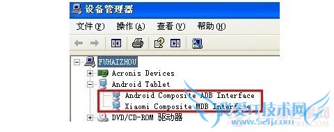 4、接下来我们再用手机数据线,将小米3连接到电脑,等待电脑加载好手机驱动即可。这里较大家如何看,电脑是否加载好手机驱动,方法是进入电脑设备管理器,然后在里边查看是否有安卓设备驱动,正常情况如下图所示: