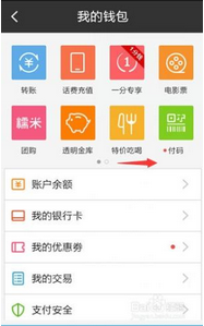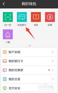 2、来到我的钱包首页,在上面的功能选项中没看到信用卡还款的话,需要通过滑动到下一页。(如下图)