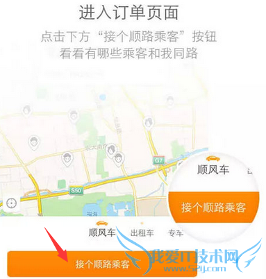 2、当你进入订单页面后,点击下方接个顺路乘客按钮,看看有哪些乘客和你同路;