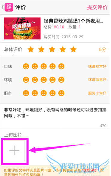 7、全部想要添加的照片都弄好以后,再点一下手机最右上角的“提交评价”。到时候在界面底下就会看到“评价成功”的文字提示啦。