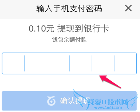 5、最后输入自己的手机支付密码,进行验证完成提现。
