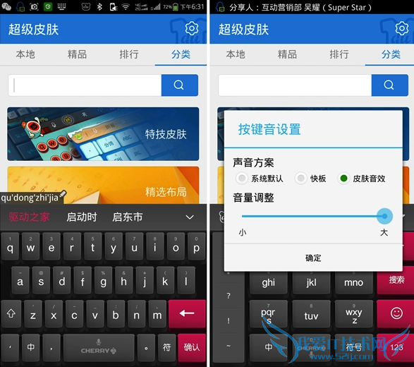 Android\iOS\Symbian用户都可以在2.1版本以上的百度手机输入法“超级皮肤”中启用“Cherry 机械键盘”的皮肤。