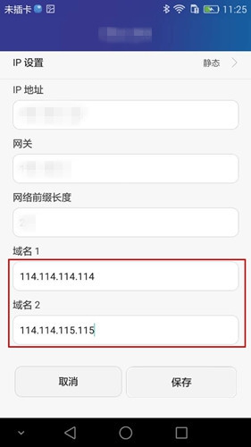 将域名1改成114.114.114.114,域名2改成114.114.115.115,然后保存即可。