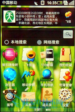软件兼容性 联想O1采用的OMS系统基于Android平台,所以系统同样支持apk格式的软件安装,为了测试O1的系统兼容性,我们特意在OMS系统安装Google G1几款常用的软件以及游戏,例如桌面日历、增强型拍照、等等结果令人满意,基本上都可以成功安装并运行。不过由于软件是针对G1设计的,所以在O1的OMS系统,部分软件无法顺利操作,但是足以证明联想O1的系统兼容性是不错的。
