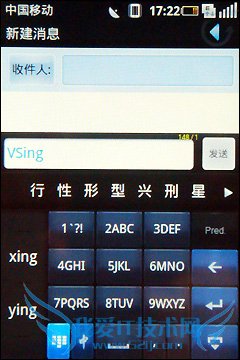 联系人 进入联想O1的联系人功能,除了一般的中文搜索,O1支持首字母搜索功能,在放大镜那里就可以快速搜索,不过经过试用,由于输入法的关系,输入一个英文字母之后,后面会自动多了一个空格,这在输入英文语句的时候很方便,但是在搜索列表则要把这个空格删掉才可以正常搜索。