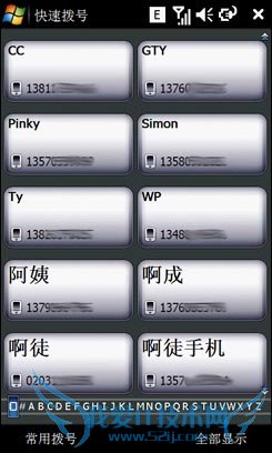 ACER F900内置的快速拨号功能非常强大,其能够一次显示10个联系人的相关资料,让用户做到一目了然,方便选择号码进行电话拨打。