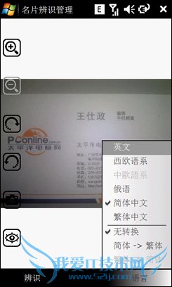 ACER F900内置的名片识别功能非常强悍,首先其为了增加拍摄名片的清晰度提供了闪光灯的支持,这样用户即便是在昏暗的环境中同样能够进行名片识别。横向拍摄完名片之后,还可以进行放大图片查看拍摄是否清晰,接着选择好相关的语言便可以进行辨识了,并且还支持繁体和简体的相互转换。由于拍摄清晰,ACER F900的识别准确度非常高,识别准确度在95%以上,经过多张名片测试,测试的过程其还曾出现过完全识别正确的情况。