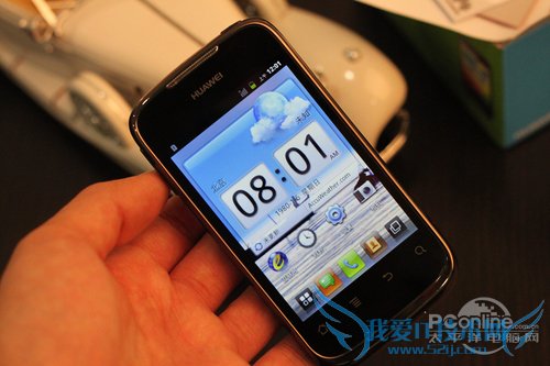 ● 正面细节设计 在正面设计上,华为C8650增强版采用的是3.5英寸的TFT屏幕,分辨率为HWVGA级别,整体做工非常精细,三围尺寸维持在116.4×61.2×12.2mm,重128g,在手感方面也有不错的体验。总体来看,在风格方面华为C8650增强版偏成熟稳重类型,窄边框让3.5英寸的屏幕看起来更大,在手机屏幕的上方是一条狭长的条形听筒,在实际通话过程中听筒效果不错。
