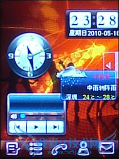 桌面的每个Widget都可以任意拖动,放置到我们认为合适的位置。双击则可以对Widget本身进行设置。比如双击天气预报,则可以设置需要预报天气的城市。总体来说,E230的待机界面非常不错。