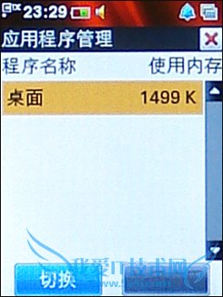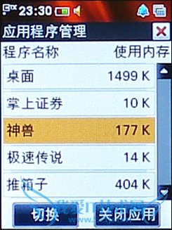 支持多任务 支持多任务运行是酷派E230的另一大特色。不论在任意界面,只要点击屏幕右上角的图标即可启动任务管理器。这里我们可以看到已经打开的应用程序和他们的内存使用情况。同样,我们可以很方便地切换到任何程序,或是在这里就直接把某个程序关闭。