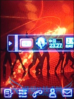 待机widget 待机界面可以说是酷派E230的一大特色。首先看解锁界面,蓝色的圆圈依稀让我们看到了众多OPhone解锁界面的身影,而滑动解锁的操作则源于更加经典的iPhone。点亮屏幕并解锁后就看到了待机桌面。待机桌面的下方是一个半透明的磨砂条。上面可以显示5种快捷方式,在设置——待机设置——待机快捷键这里可以对这5个快捷方式进行设置,把他们指定为我们经常用到的功能。